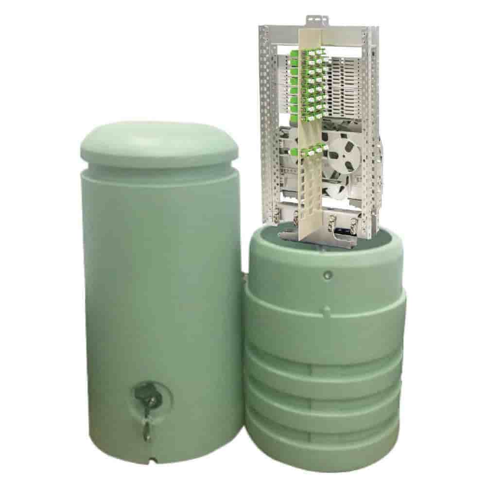 * Dahili hava koşullarına dayanıklı fiber dağıtım kutusu, splice (ek) yeri ve kablo depolama alanlarının mekanik ve çevresel korumasını sağlar